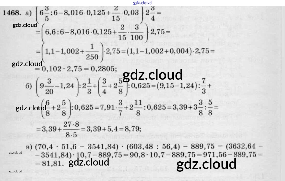 Ответ на задание 1468 Учебник Математика за 6 (шестой) класс Виленкин, Жохов, Чесноков, Шварцбурд 2014