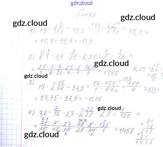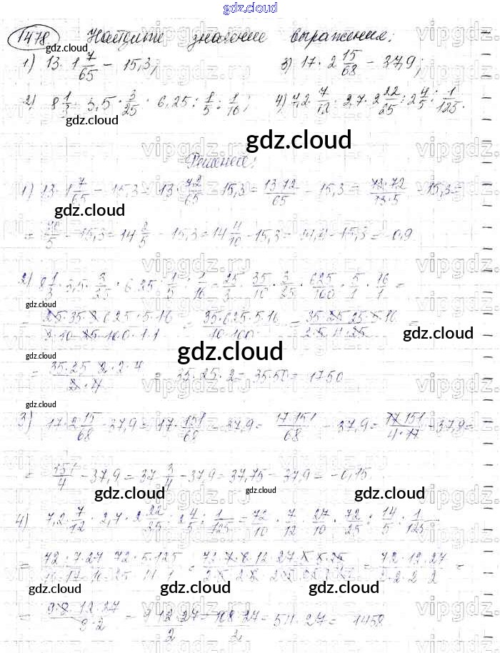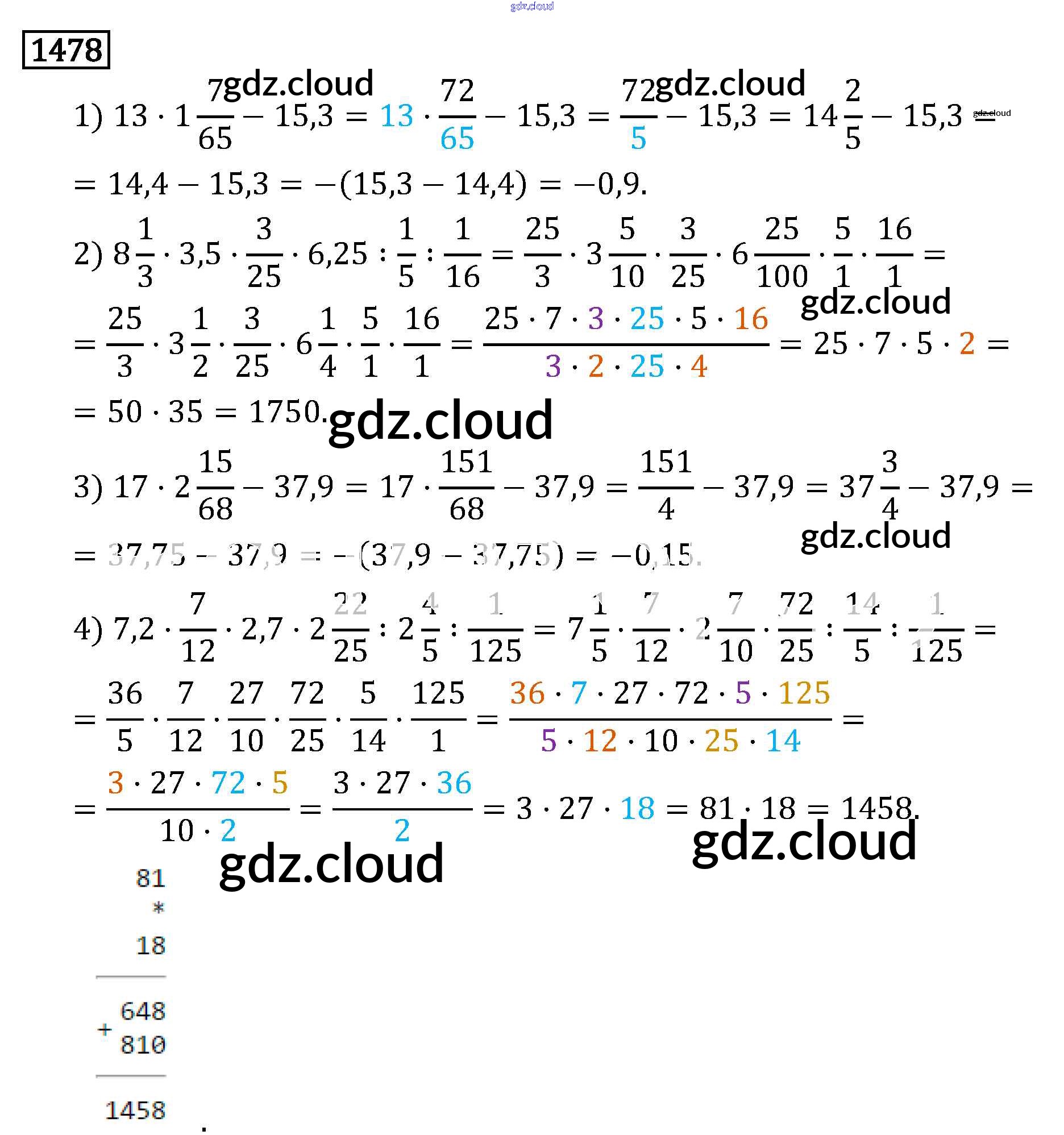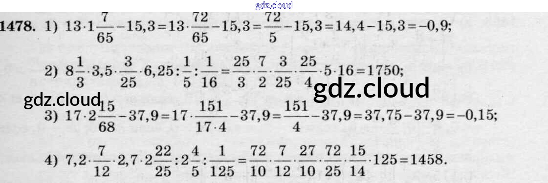 Ответ на задание 1478 Учебник Математика за 6 (шестой) класс Виленкин, Жохов, Чесноков, Шварцбурд 2014