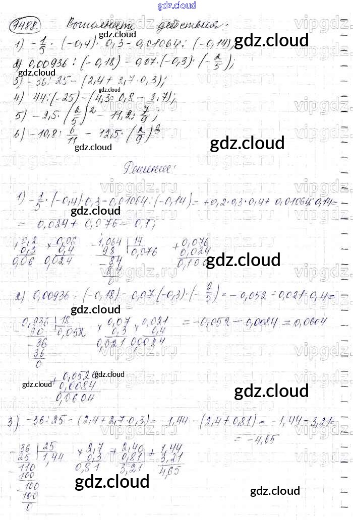 Ответ на задание 1488 Учебник Математика за 6 (шестой) класс Виленкин, Жохов, Чесноков, Шварцбурд 2014