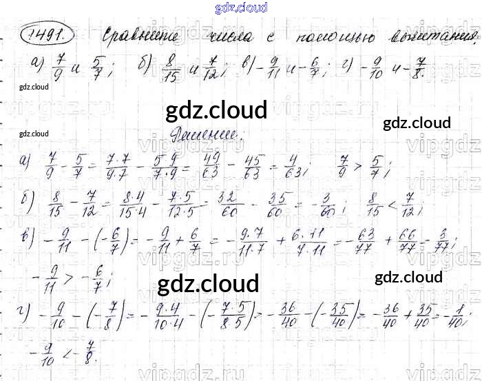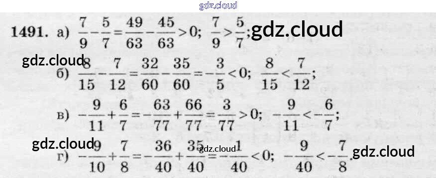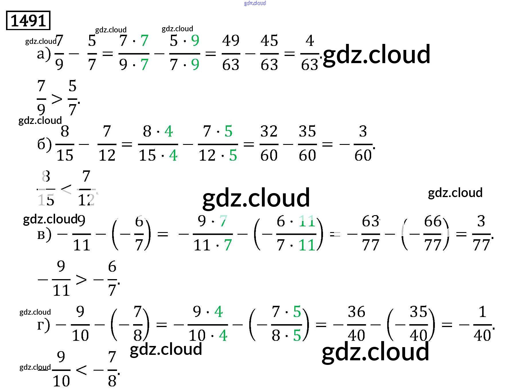 Ответ на задание 1491 Учебник Математика за 6 (шестой) класс Виленкин, Жохов, Чесноков, Шварцбурд 2014