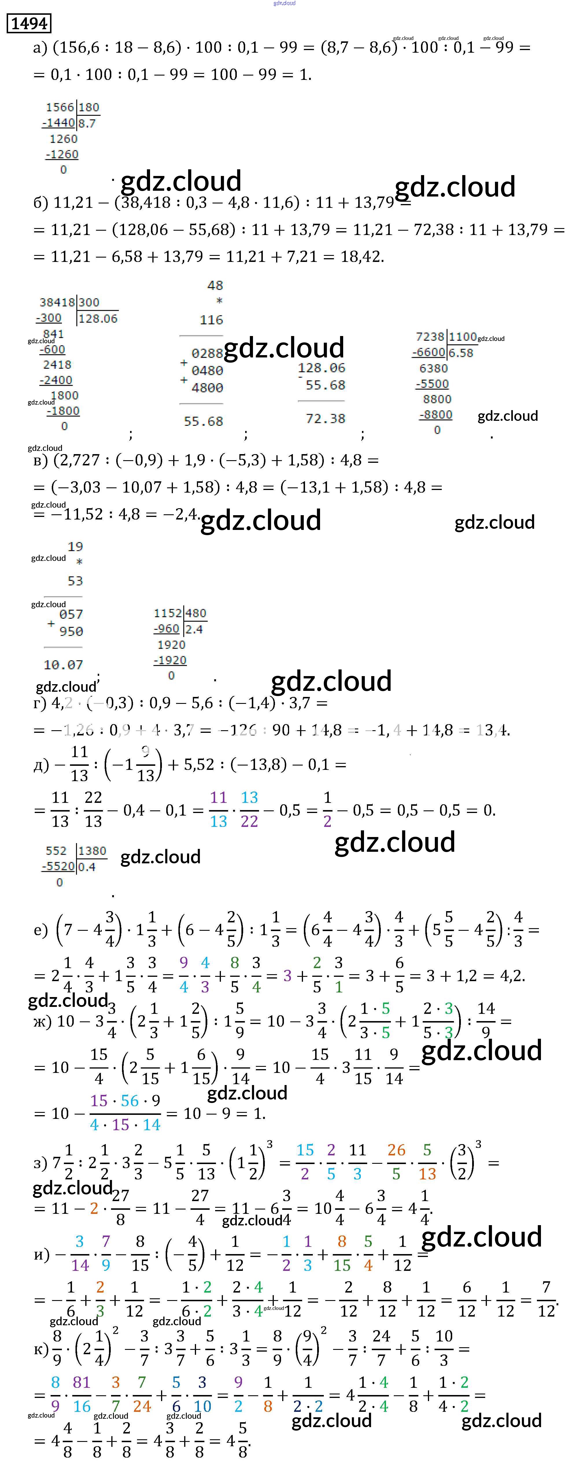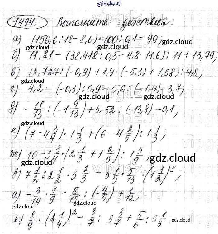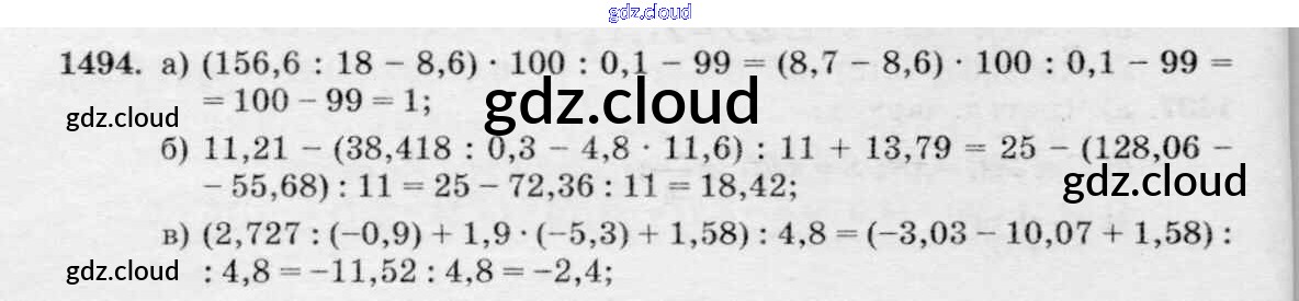 Ответ на задание 1494 Учебник Математика за 6 (шестой) класс Виленкин, Жохов, Чесноков, Шварцбурд 2014