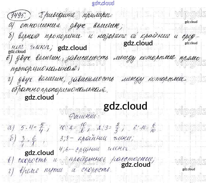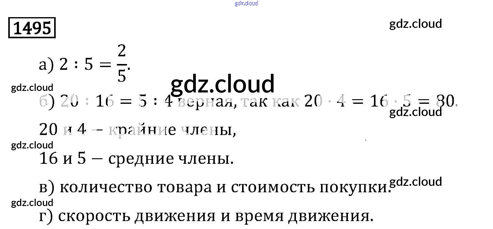 Ответ на задание 1495 Учебник Математика за 6 (шестой) класс Виленкин, Жохов, Чесноков, Шварцбурд 2014