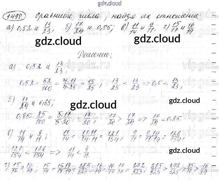 Ответ на задание 1498 Учебник Математика за 6 (шестой) класс Виленкин, Жохов, Чесноков, Шварцбурд 2014