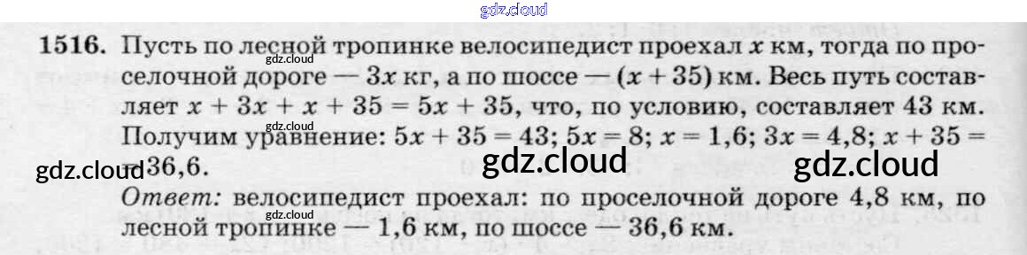 Ответ на задание 1516 Учебник Математика за 6 (шестой) класс Виленкин, Жохов, Чесноков, Шварцбурд 2014