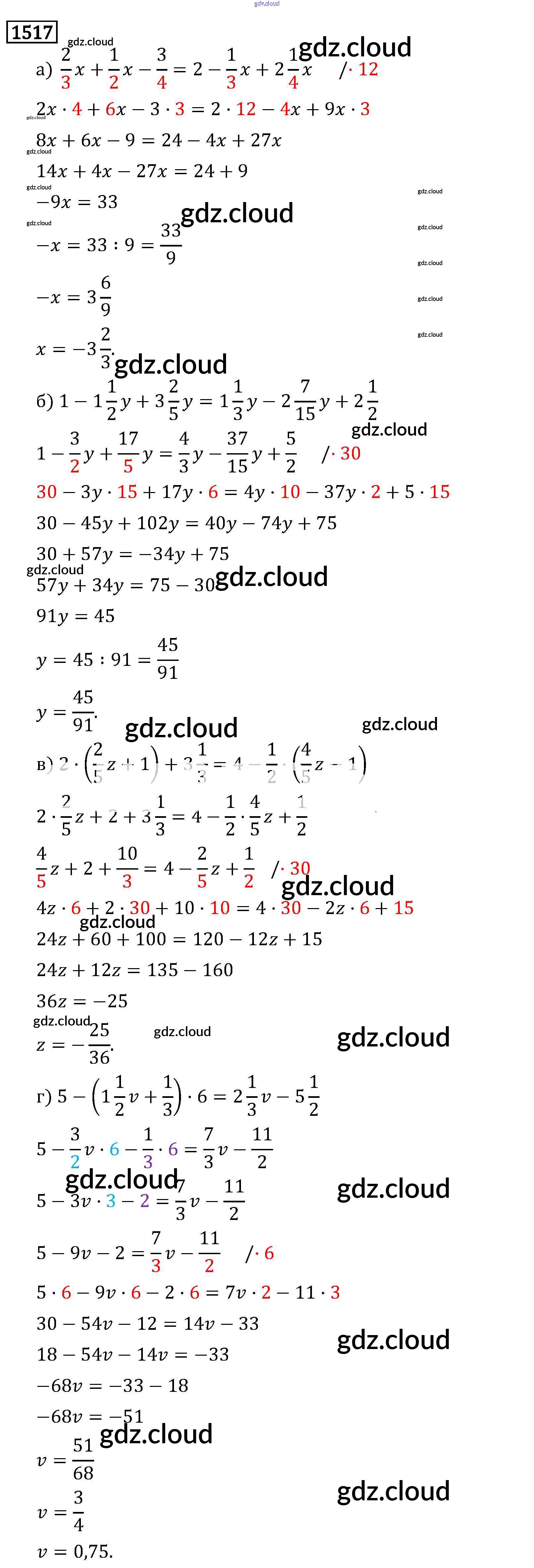Ответ на задание 1517 Учебник Математика за 6 (шестой) класс Виленкин, Жохов, Чесноков, Шварцбурд 2014