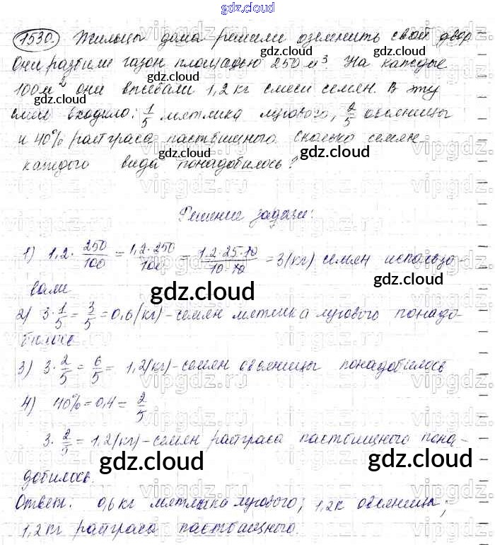 Ответ на задание 1530 Учебник Математика за 6 (шестой) класс Виленкин, Жохов, Чесноков, Шварцбурд 2014