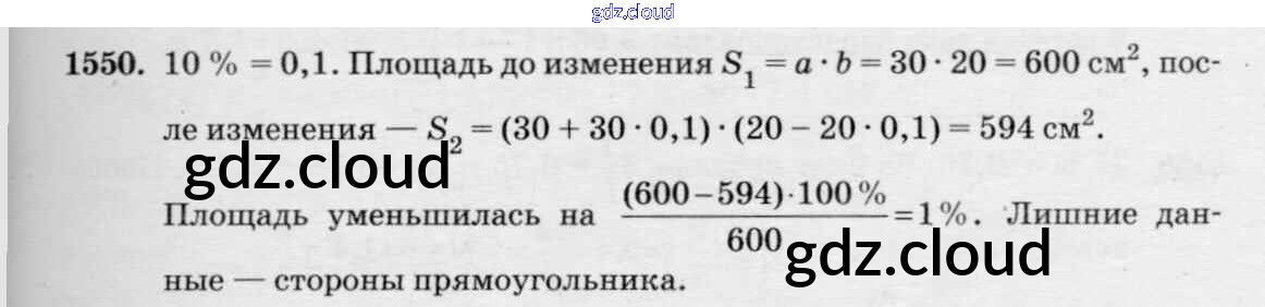 Ответ на задание 1550 Учебник Математика за 6 (шестой) класс Виленкин, Жохов, Чесноков, Шварцбурд 2014