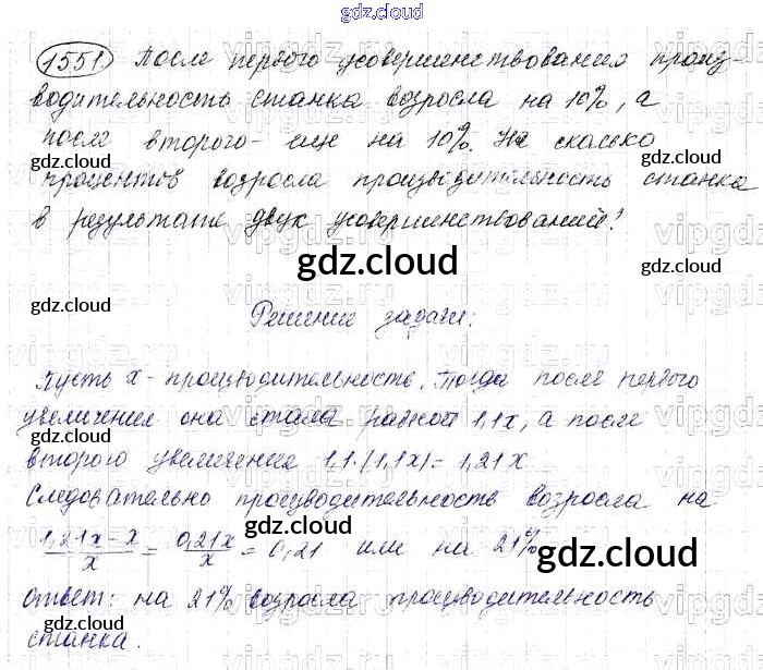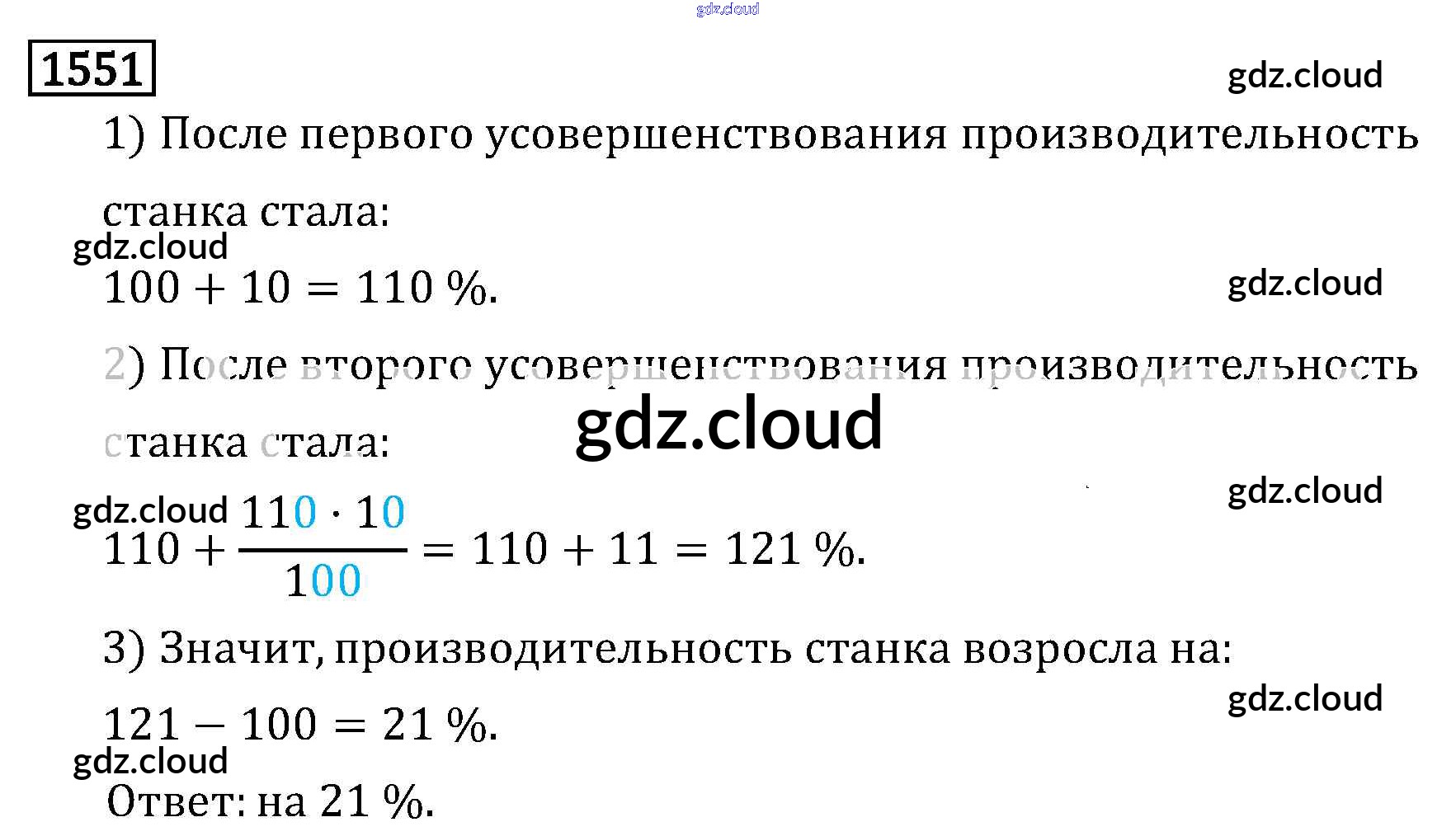 Ответ на задание 1551 Учебник Математика за 6 (шестой) класс Виленкин, Жохов, Чесноков, Шварцбурд 2014