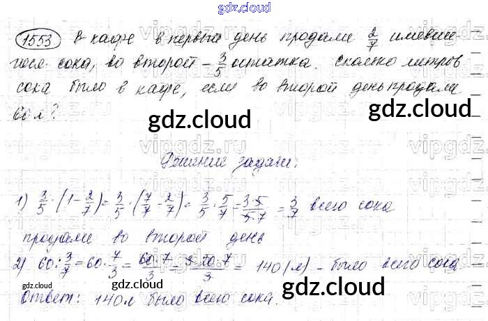 Ответ на задание 1553 Учебник Математика за 6 (шестой) класс Виленкин, Жохов, Чесноков, Шварцбурд 2014