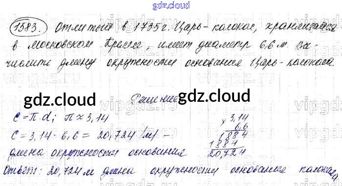 Ответ на задание 1583 Учебник Математика за 6 (шестой) класс Виленкин, Жохов, Чесноков, Шварцбурд 2014