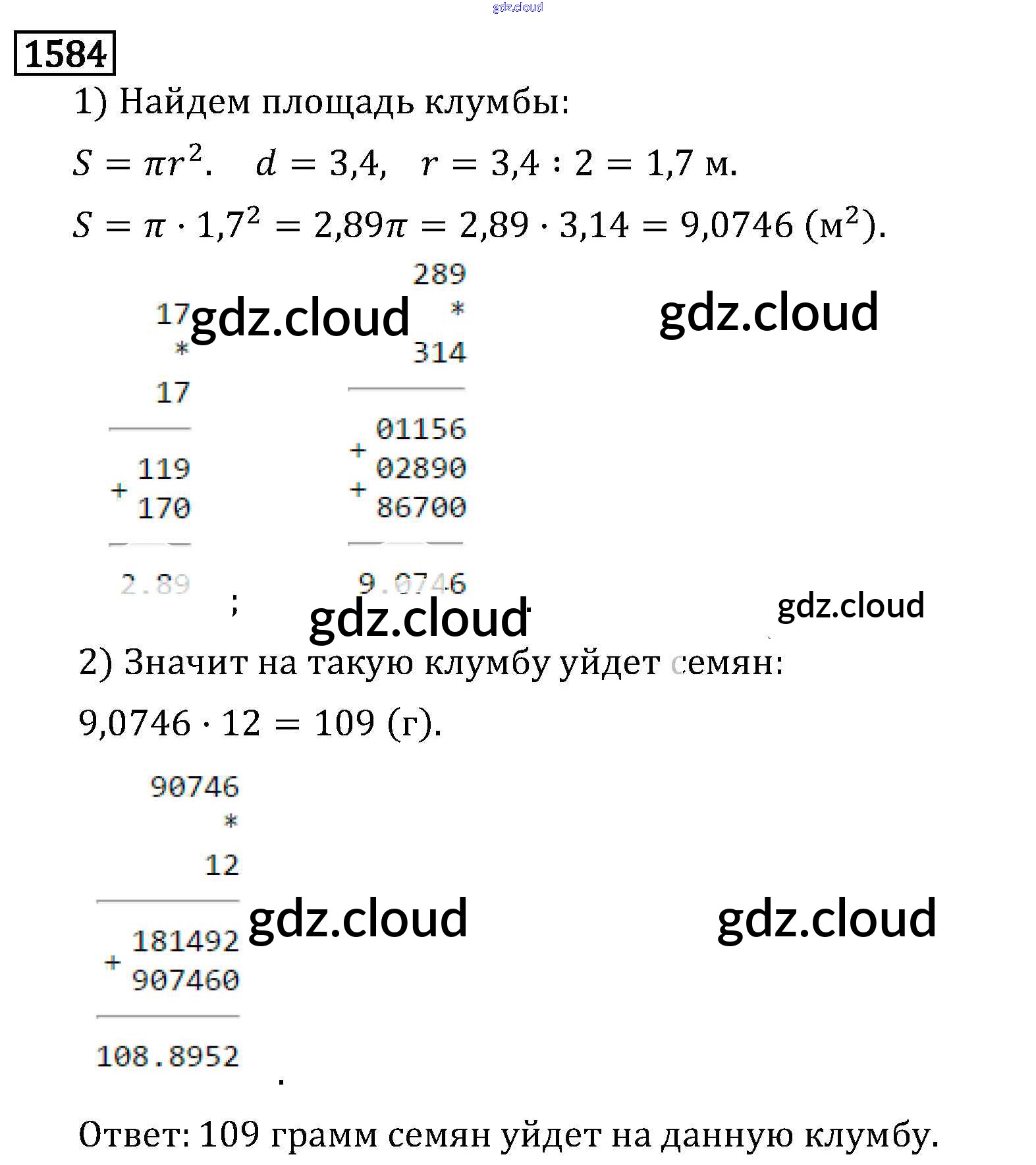 Ответ на задание 1584 Учебник Математика за 6 (шестой) класс Виленкин, Жохов, Чесноков, Шварцбурд 2014