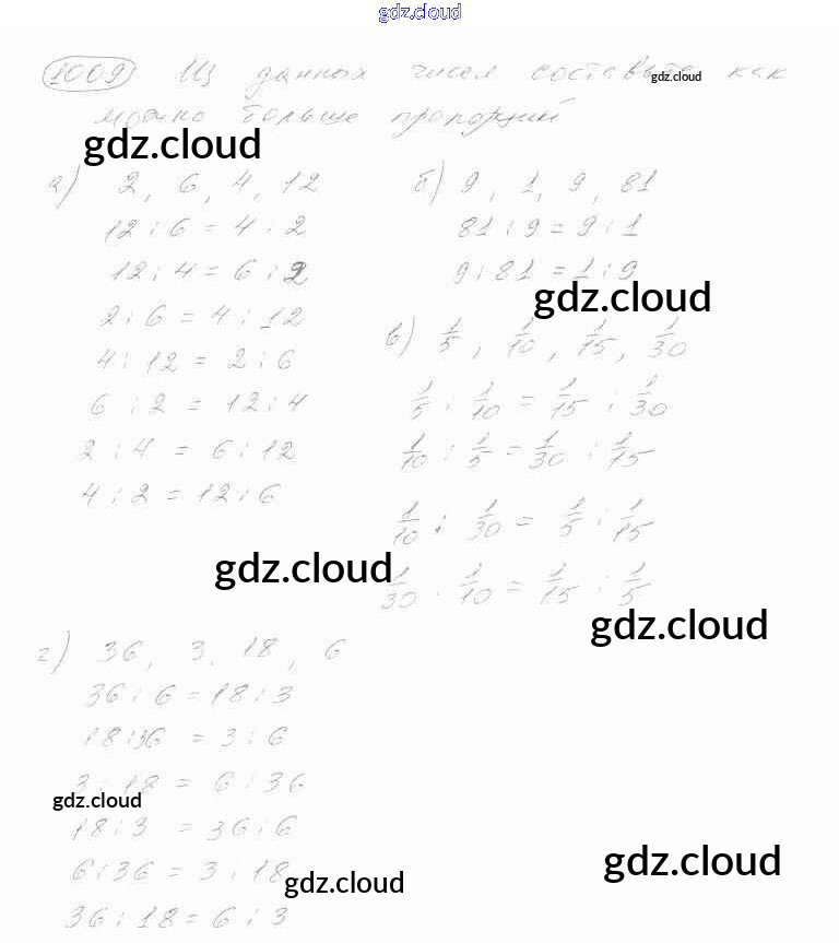 Ответ на задание 1009 Учебник Математика за 6 (шестой) класс Зубарева, Мордкович 2015