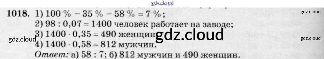 Ответ на задание 1018 Учебник Математика за 6 (шестой) класс Зубарева, Мордкович 2015