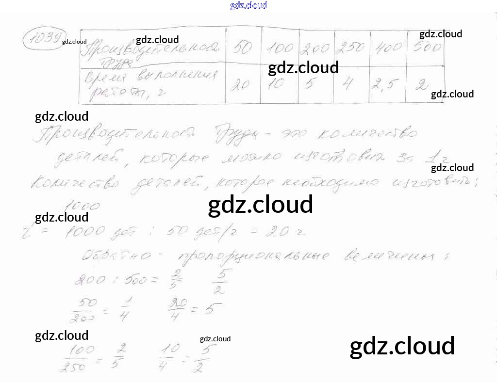 Ответ на задание 1039 Учебник Математика за 6 (шестой) класс Зубарева, Мордкович 2015