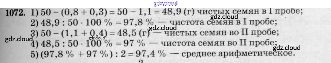 Ответ на задание 1072 Учебник Математика за 6 (шестой) класс Зубарева, Мордкович 2015