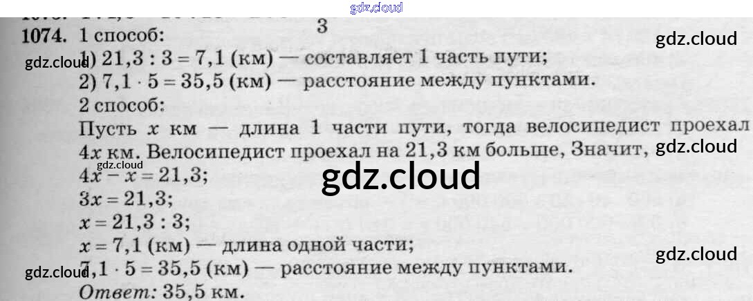 Ответ на задание 1074 Учебник Математика за 6 (шестой) класс Зубарева, Мордкович 2015