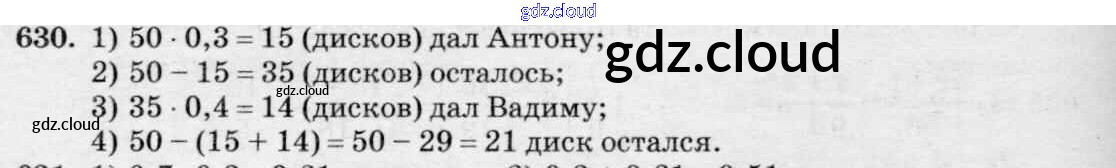 Ответ на задание 630 Учебник Математика за 6 (шестой) класс Зубарева, Мордкович 2015