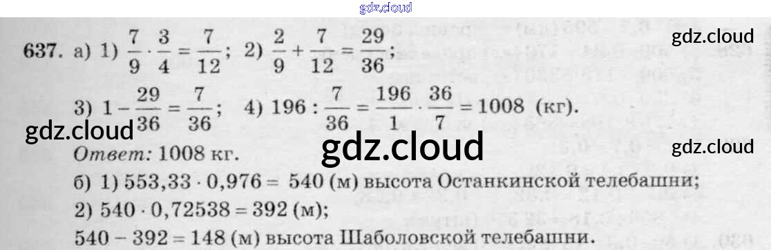 Ответ на задание 637 Учебник Математика за 6 (шестой) класс Зубарева, Мордкович 2015