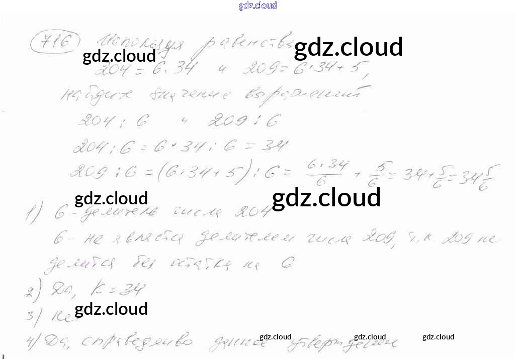 Ответ на задание 716 Учебник Математика за 6 (шестой) класс Зубарева, Мордкович 2015 ФГОС онлайн и без номера телефона.