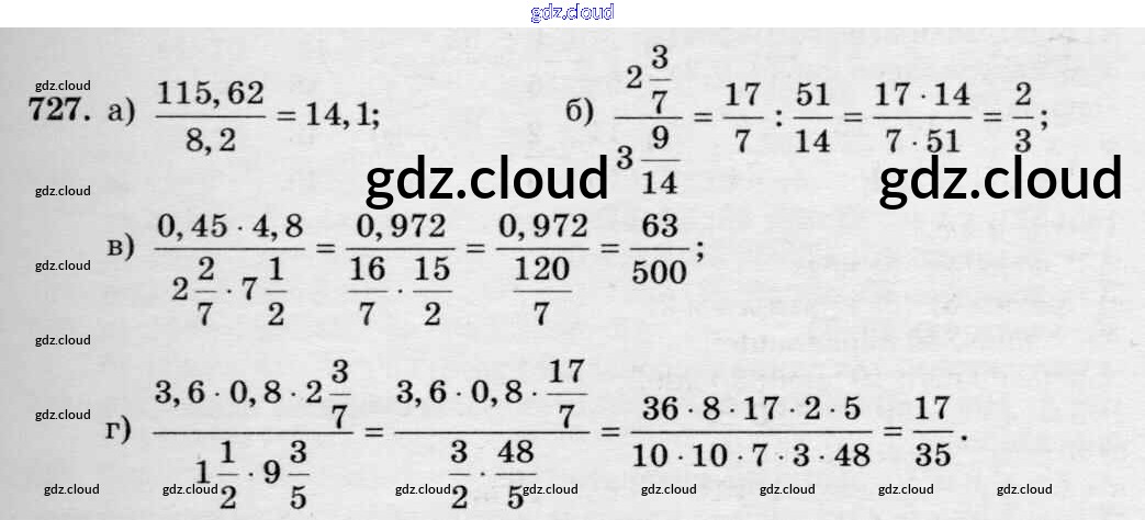 Ответ на задание 727 Учебник Математика за 6 (шестой) класс Зубарева, Мордкович 2015