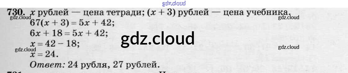 Ответ на задание 730 Учебник Математика за 6 (шестой) класс Зубарева, Мордкович 2015
