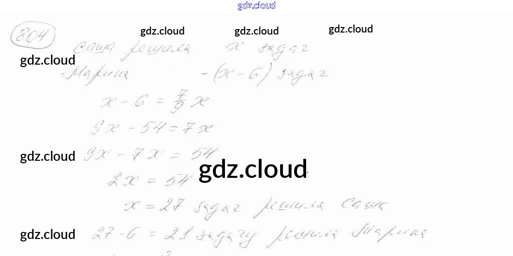 Ответ на задание 804 Учебник Математика за 6 (шестой) класс Зубарева, Мордкович 2015