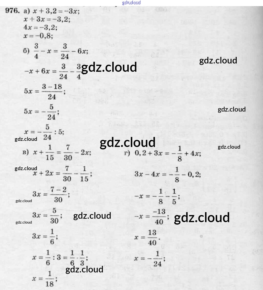 Ответ на задание 976 Учебник Математика за 6 (шестой) класс Зубарева, Мордкович 2015