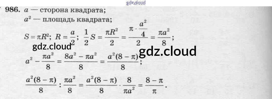Ответ на задание 986 Учебник Математика за 6 (шестой) класс Зубарева, Мордкович 2015