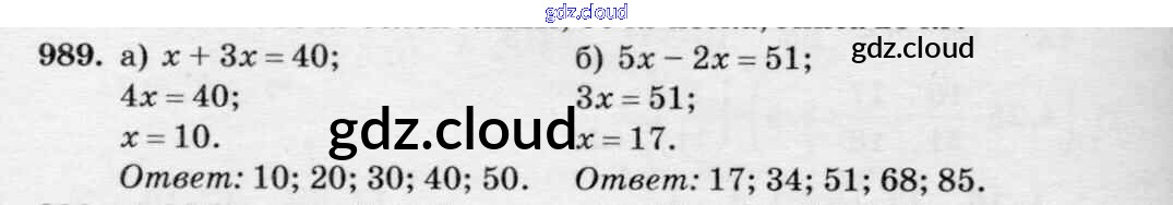Ответ на задание 989 Учебник Математика за 6 (шестой) класс Зубарева, Мордкович 2015