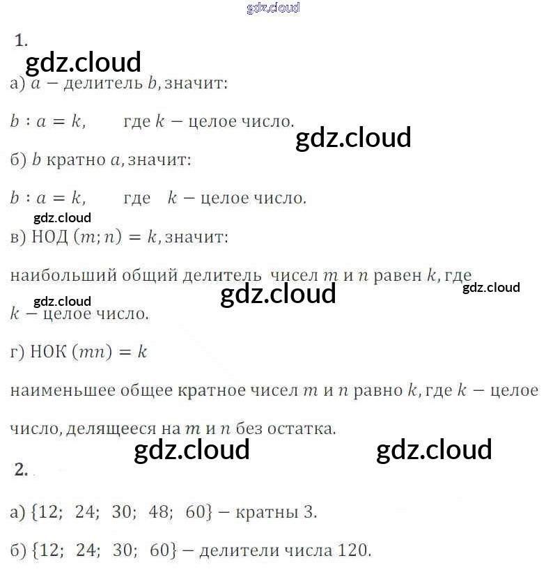 Ответы к Контрольным вопросам и заданиям. Параграфы по Математике 6 класс Учебник Зубарева Мнемозина