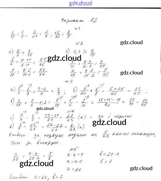 Ответ на задание А-2 Самостоятельные и контрольные работы Математика за 6 (шестой) класс Ершова, Голобородько 2015