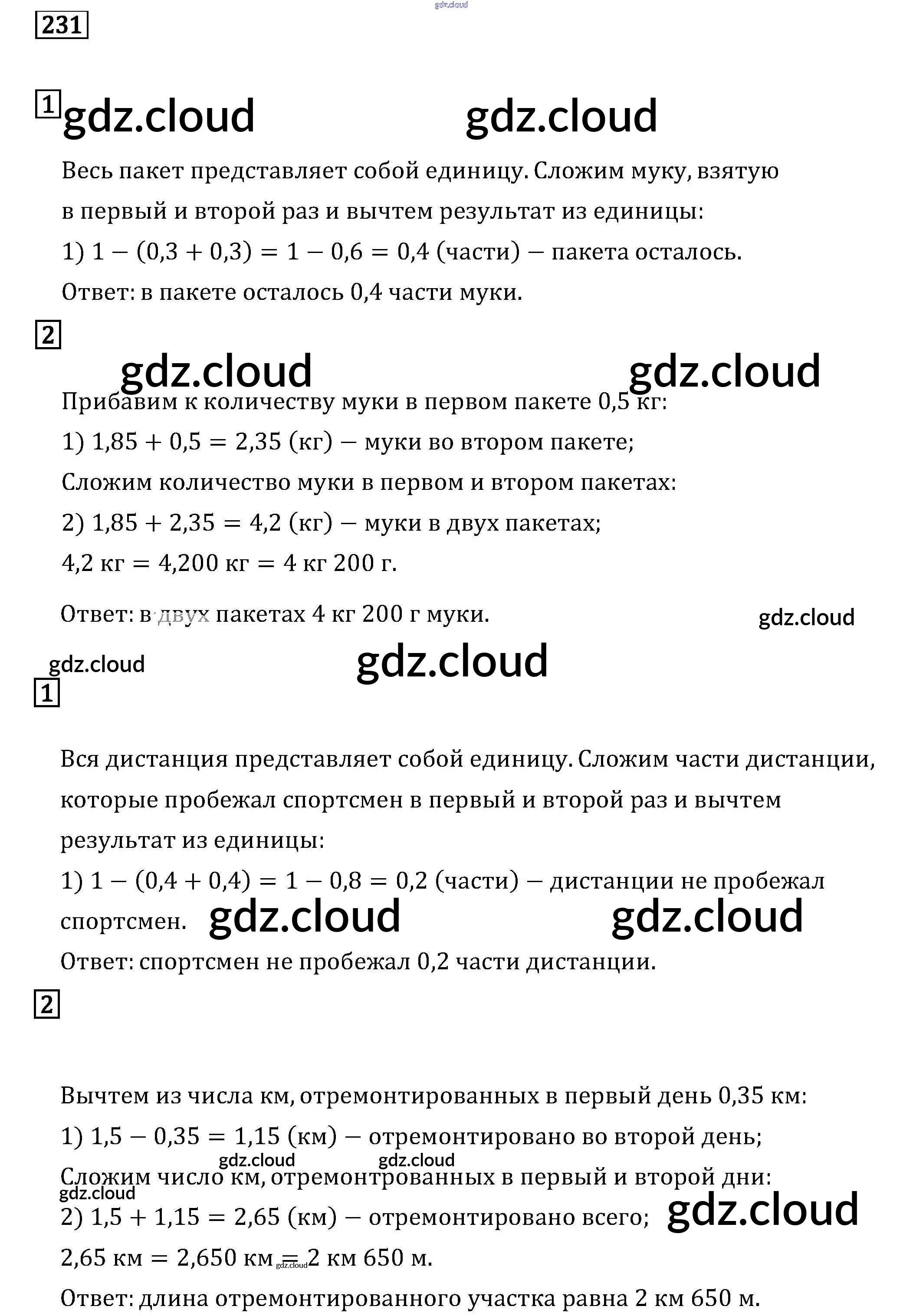 Ответ на задание 231 Задачник Математика за 6 (шестой) класс Бунимович, Кузнецова, Минаева Сферы 2014 Часть 1, 2