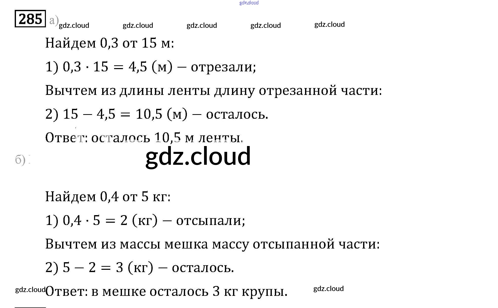 Ответ на задание 285 Задачник Математика за 6 (шестой) класс Бунимович, Кузнецова, Минаева Сферы 2014 Часть 1, 2