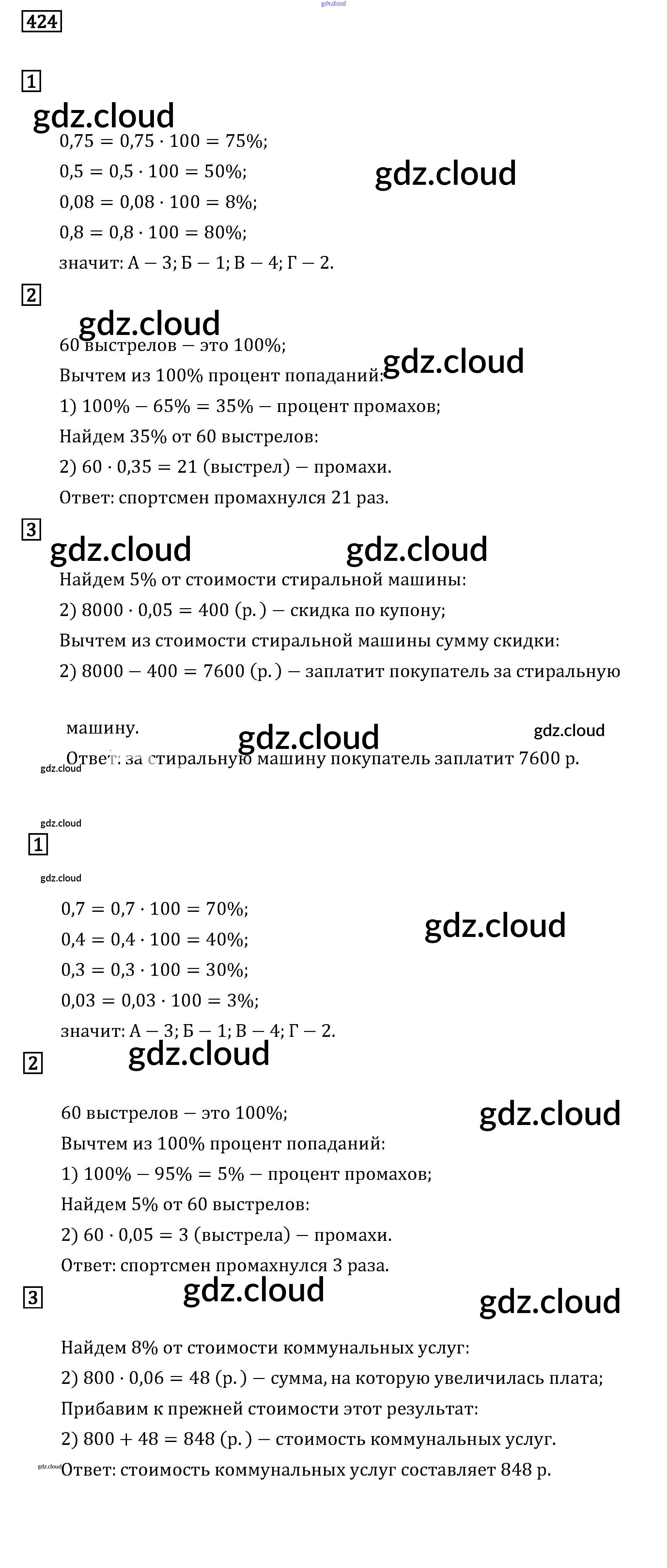 Ответ на задание 424 Задачник Математика за 6 (шестой) класс Бунимович, Кузнецова, Минаева Сферы 2014 Часть 1, 2
