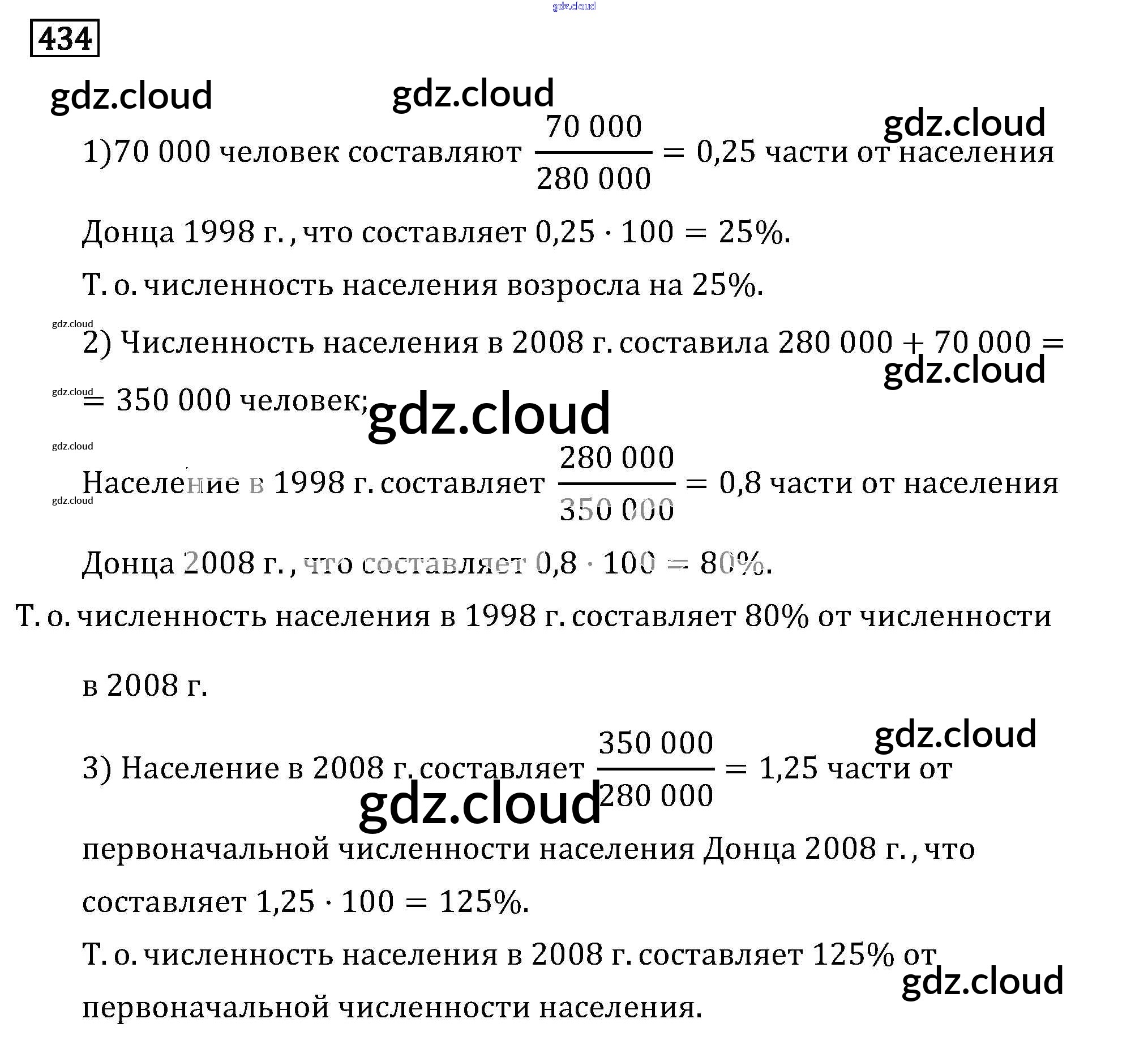 Ответ на задание 434 Задачник Математика за 6 (шестой) класс Бунимович, Кузнецова, Минаева Сферы 2014 Часть 1, 2
