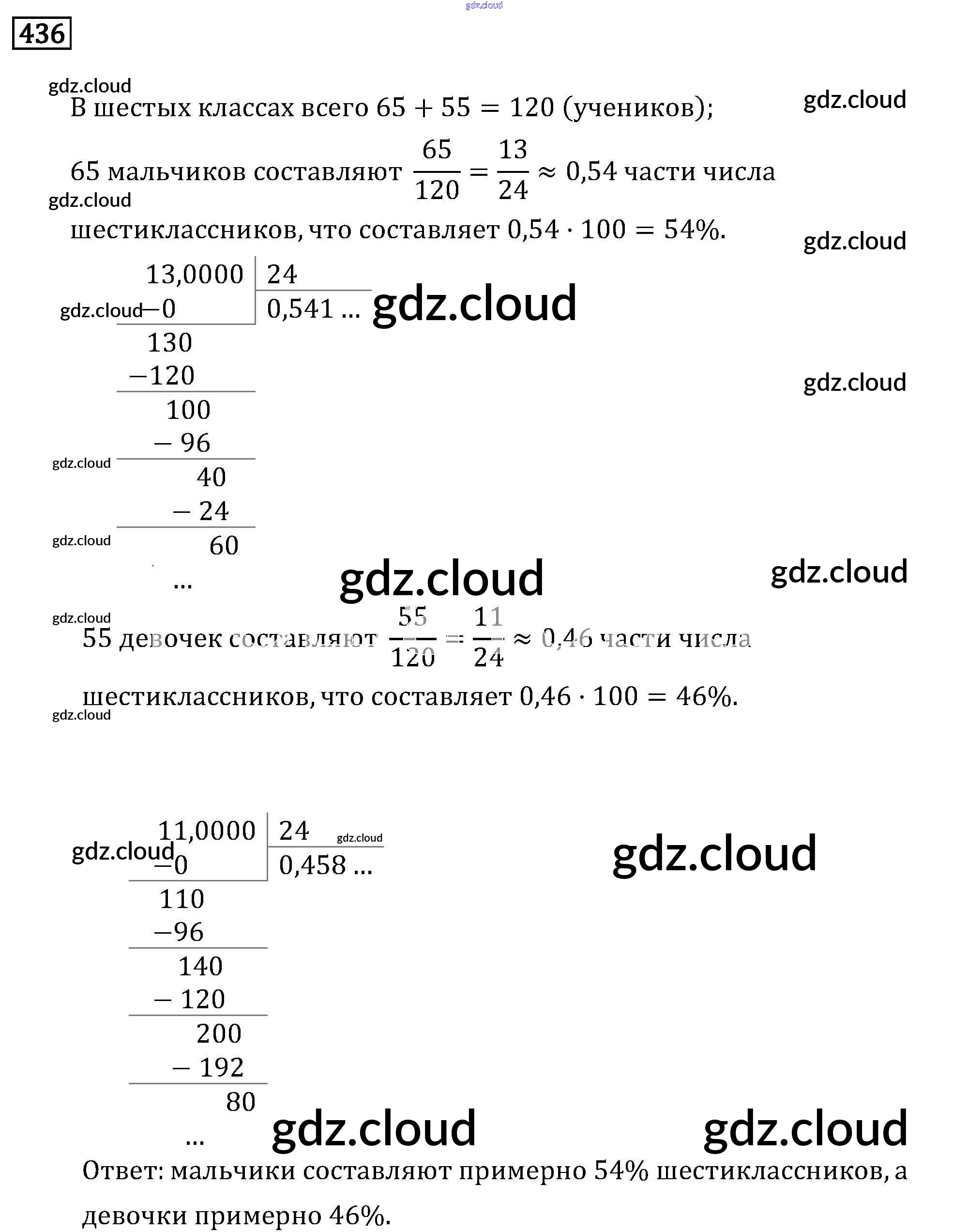Ответ на задание 436 Задачник Математика за 6 (шестой) класс Бунимович, Кузнецова, Минаева Сферы 2014 Часть 1, 2