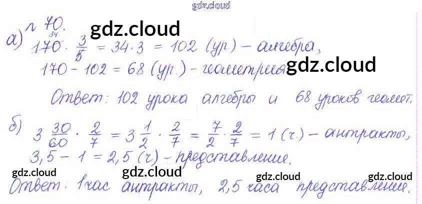 Ответ на задание 70 Задачник Математика за 6 (шестой) класс Бунимович, Кузнецова, Минаева Сферы 2014 Часть 1, 2