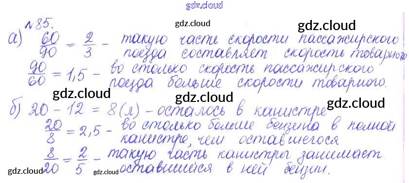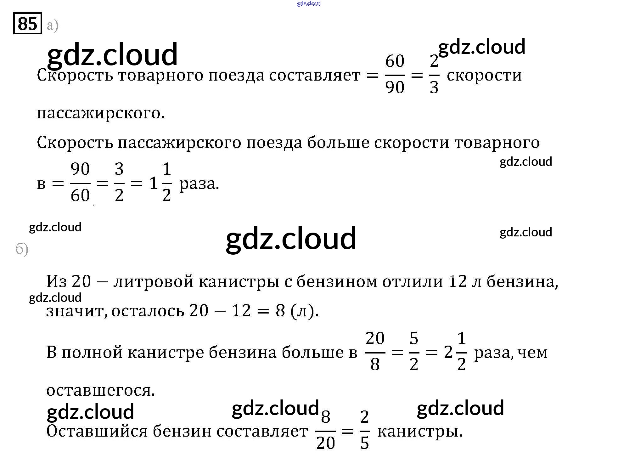 Ответ на задание 85 Задачник Математика за 6 (шестой) класс Бунимович, Кузнецова, Минаева Сферы 2014 Часть 1, 2