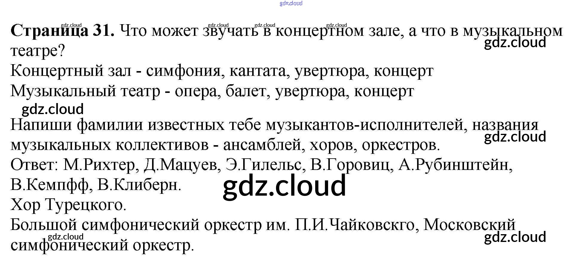 Ответ на задание 31 Рабочая тетрадь Музыка за 1 (первый) класс Критская, Сергеева, Шмагина Школа России, Перспектива 2018