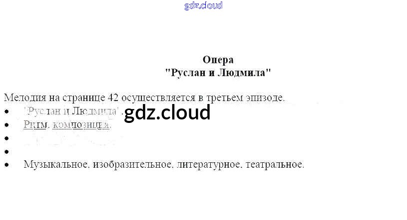 Ответ на задание Опера Руслан и Людмила Творческая тетрадь Музыка за 5 (пятый) класс Сергеева, Критская 2017