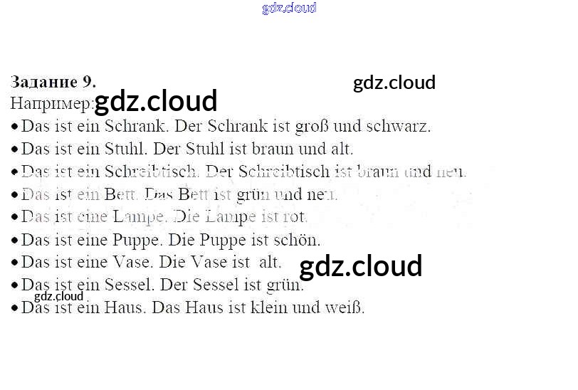 Ответ на задание 9 Рабочая тетрадь Немецкий язык за 2 (второй) класс Гальскова, Гез 2017 Часть 1, 2