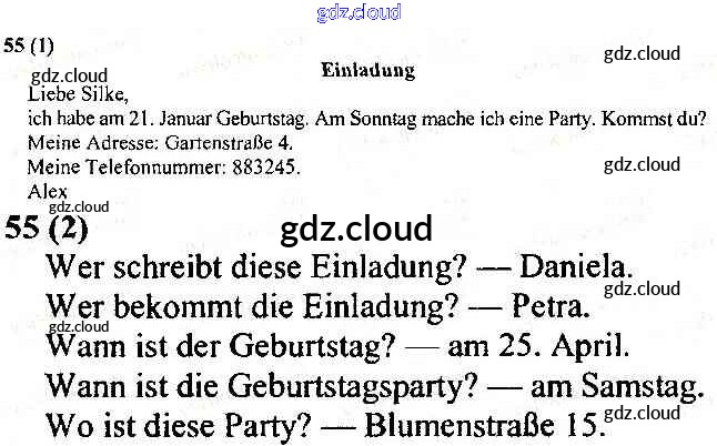Ответ на задание 55 Рабочая тетрадь Немецкий язык за 3 (третий) класс Мельничук, Паршикова 2013 онлайн и без номера телефона.
