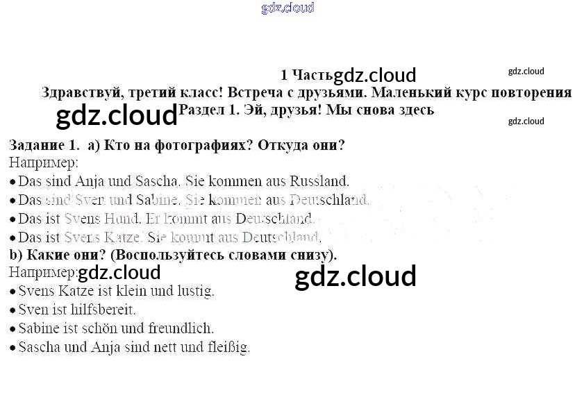 Раздел 1. Эй, друзья! Мы снова здесь Ответы к теме: Здравствуй, третий класс! Встреча с друзьями. Маленький курс повторения по Немецкому языку 3 класс Учебник Бим Часть 1, 2 Просвещение