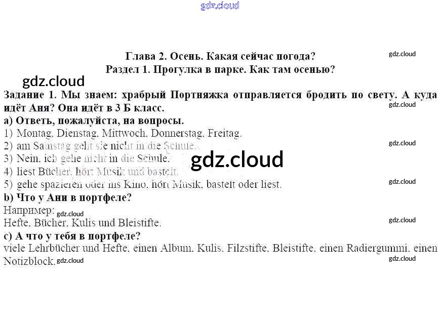Раздел 1. Прогулка в парке. Как там осенью Ответы к главе 2. Осень. Какая сейчас погода по Немецкому языку 3 класс Учебник Бим Часть 1, 2 Просвещение