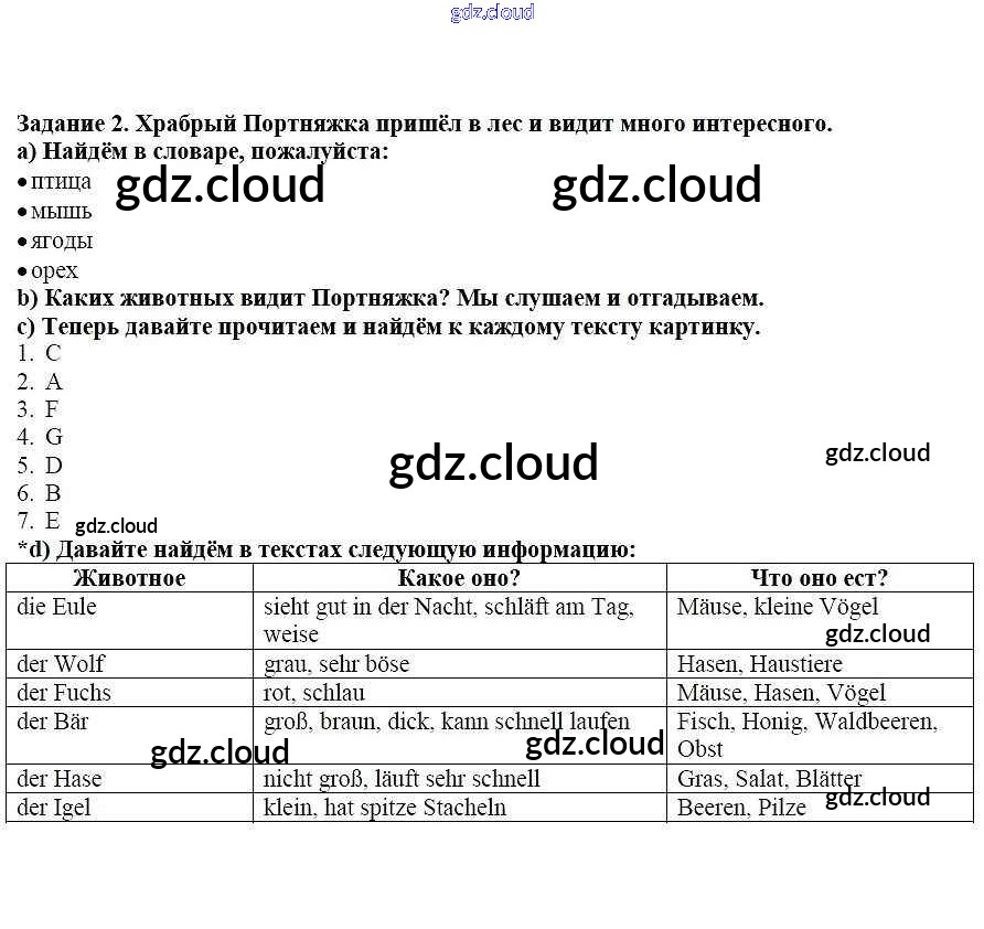 Ответ на задание 2 Учебник Немецкий язык за 3 (третий) класс Бим, Рыжова, Фомичева 2014 Часть 1, 2
