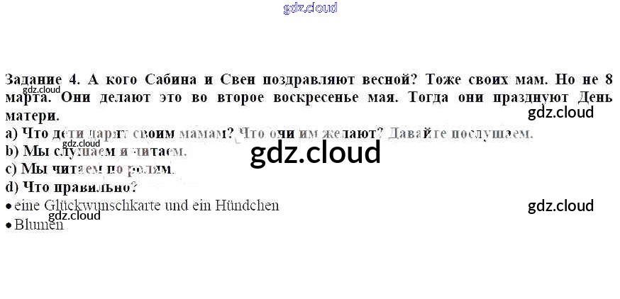 Раздел 3. Мы поздравляем наших мам с Женским днём Ответы к главе 5. Наступила весна. И с ней замечательные праздника, не так ли по Немецкому языку 3 класс Учебник Бим Часть 1, 2 Просвещение