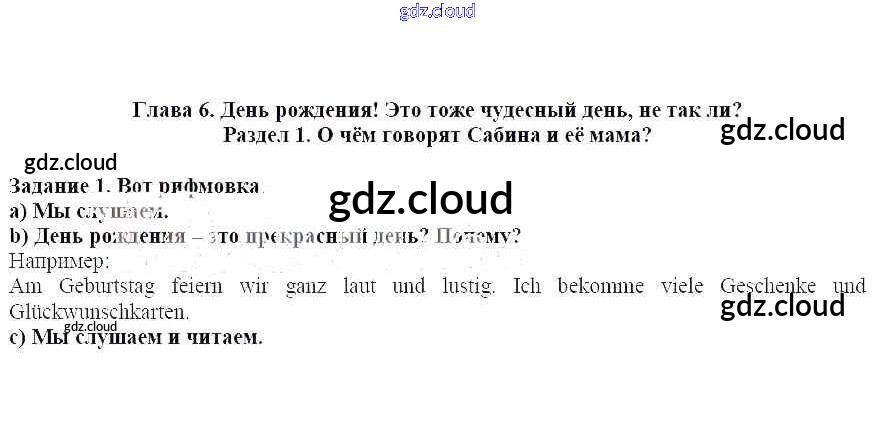 Раздел 1. О чём говорят Сабина и её мама Ответы к главе 6. День рождения! Это тоже чудесный день, не так ли по Немецкому языку 3 класс Учебник Бим Часть 1, 2 Просвещение