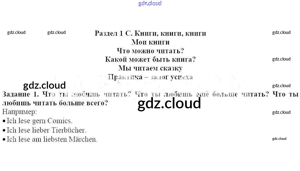 Раздел 1 С. Книги, книги, книги Ответы к главе 1. Мои хобби по Немецкому языку 4 класс Учебник Гальскова Ритм   Дрофа