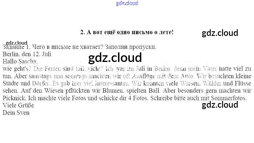 А вот ещё одно письмо о лете! Ответы к разделу Как прошло лето по Немецкому языку 4 класс Рабочая тетрадь Бим Просвещение