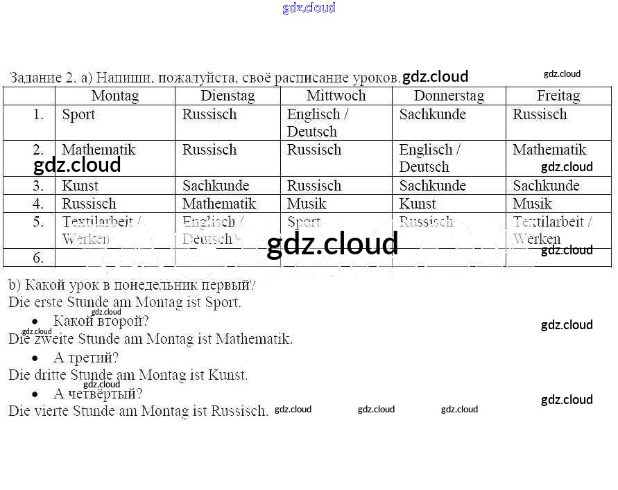 Ответ на задание 2 Рабочая тетрадь Немецкий язык за 4 (четвертый) класс Бим, Рыжова 2020